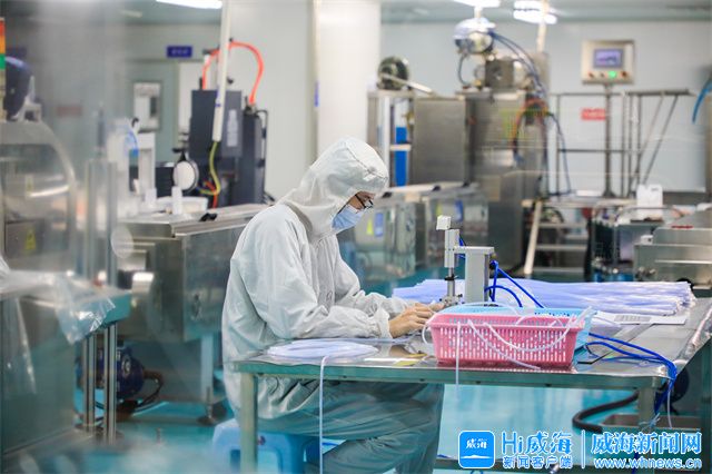 在威海世创医疗科技有限公司生产车间内,工作人员正在生产组装微创引流系列产品。