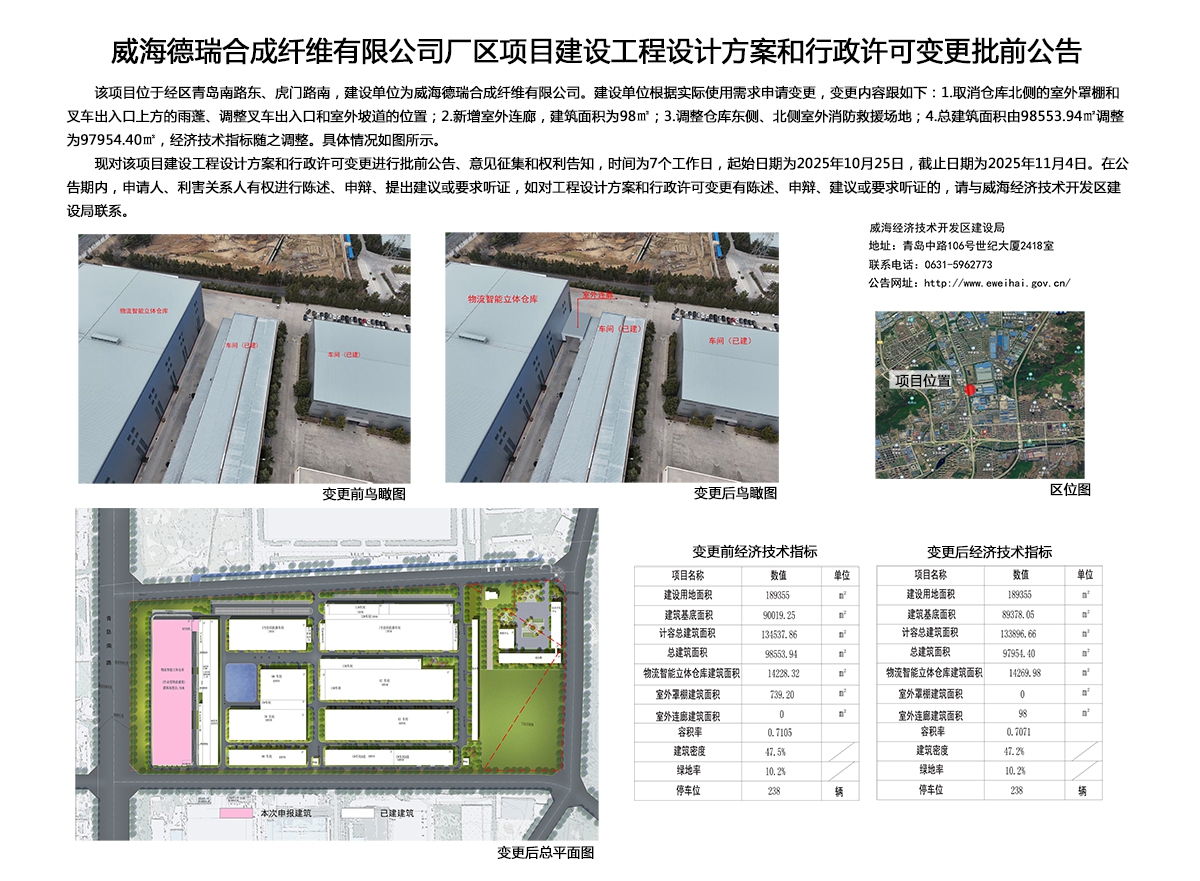 威海德瑞合成纤维有限公司厂区项目建设工程设计方案和行政许可变更批前公告